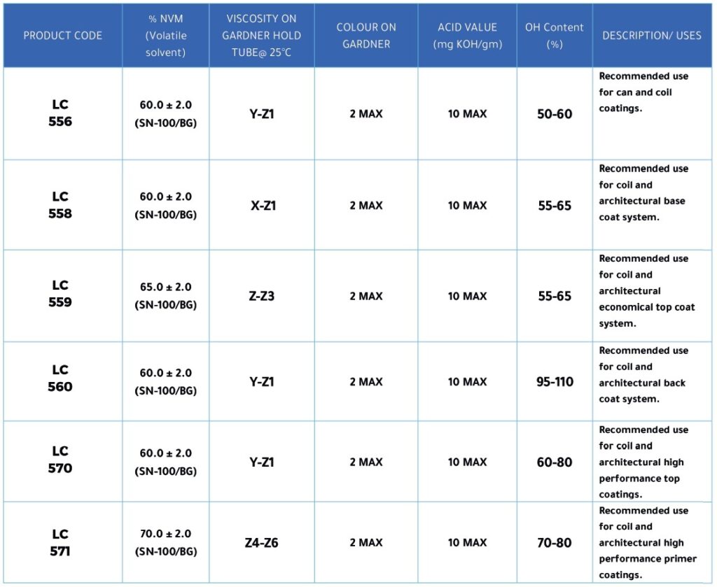 High‑clarity, durable resins used in coil coatings & high‑performance industrial finishes.